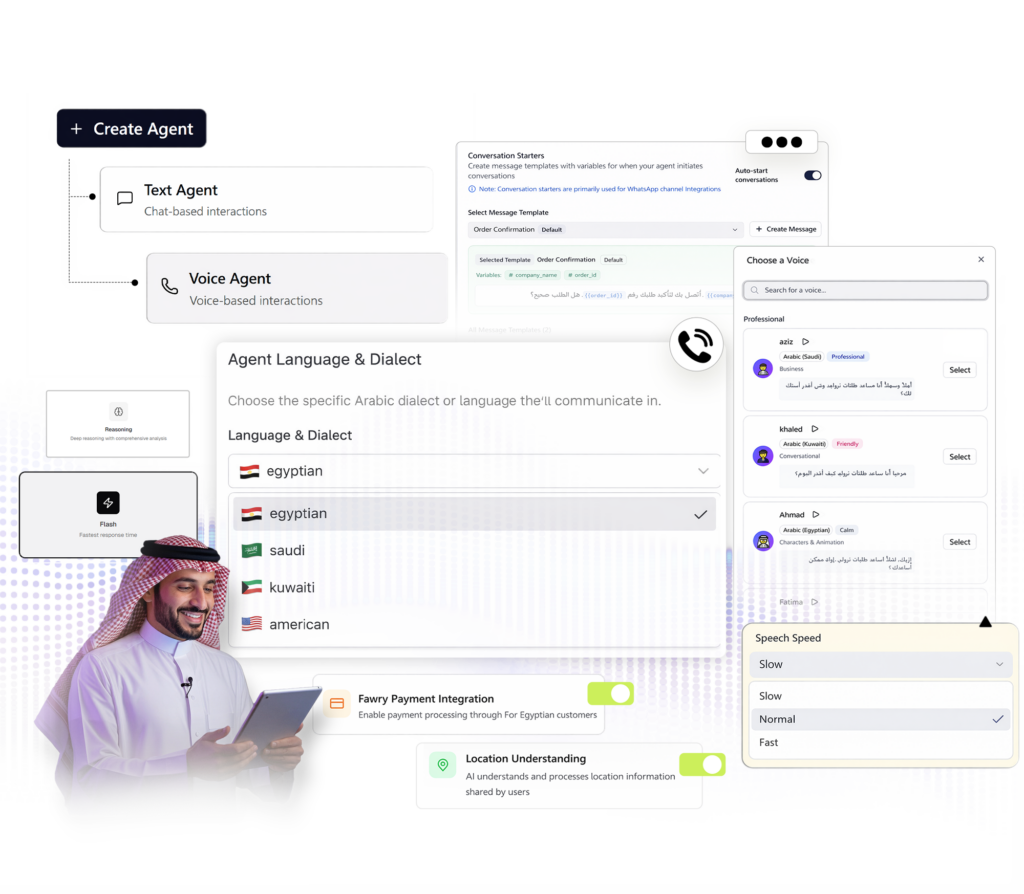 ذكاء اصطناعي للحكومات وكافة المؤسسات بداخل منطقة الشرق الأوسط وشمال أفريقيا، يفهم اللهجات التي يتحدث بها فريقك فعليًا، ينفّذ كل المهام.