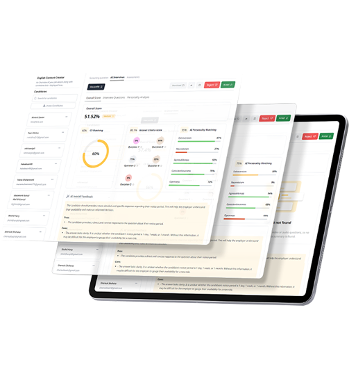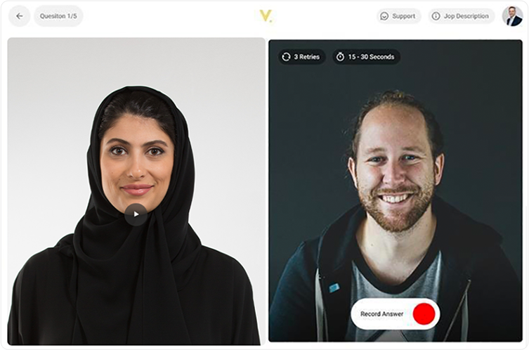 يقوم الذكاء الاصطناعي بمحاكاة دور مدير التوظيف في مقابلة المرشحين، تحليل إجاباتهم، شخصياتهم، ومشاعرهم. ثم يقوم بتصنيفهم بناءً على متطلبات الوظيفة.