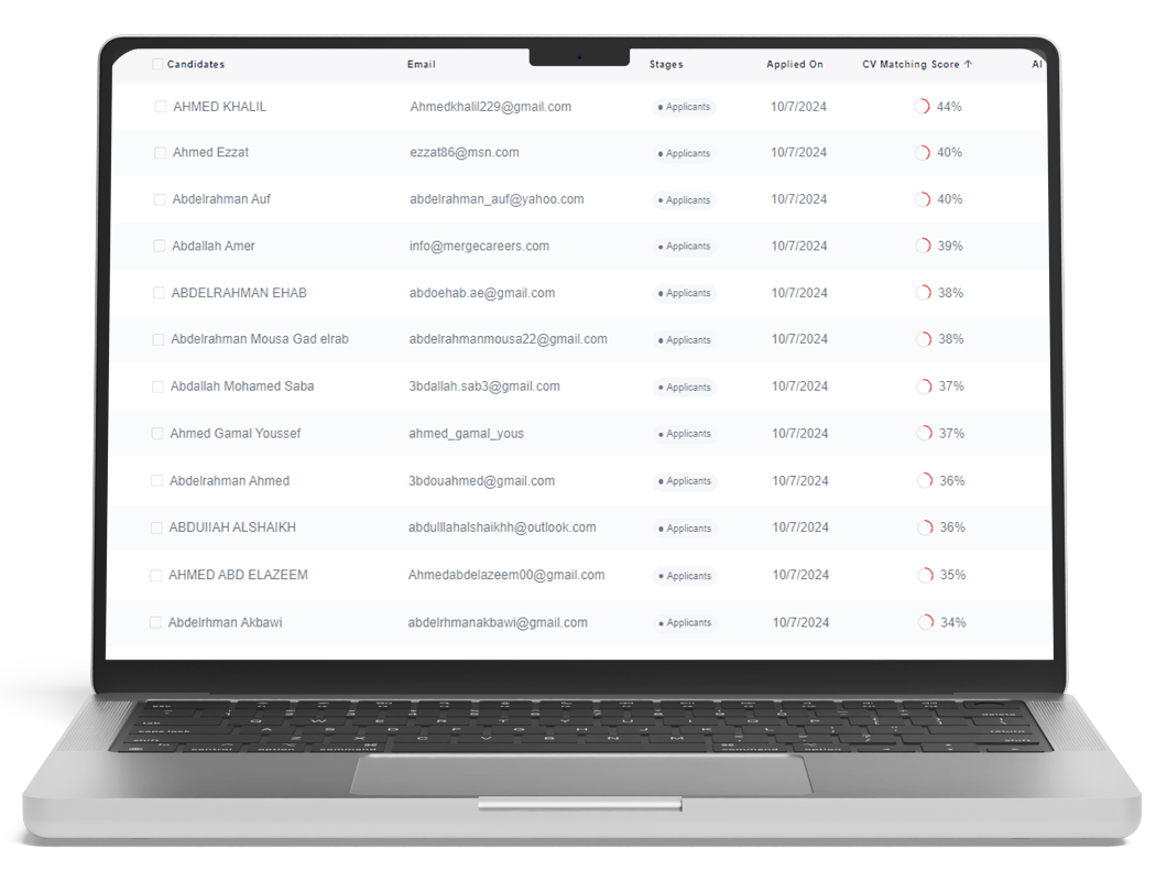 يتم تصفية السير الذاتية وتصنيفها بناءً على مدى تطابقها مع معايير ومتطلبات الوظيفة من خلال أداة المطابقة بالذكاء الاصطناعي الخاصة بنا.