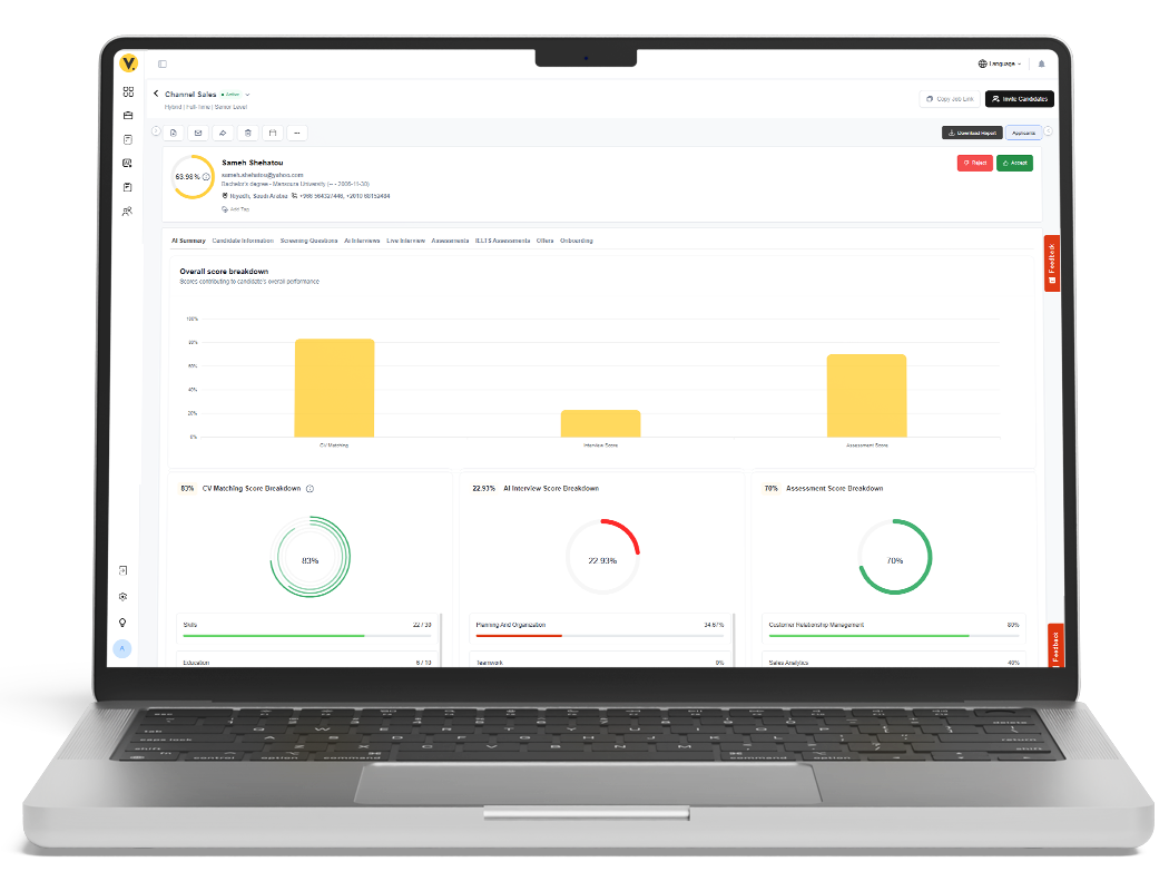 قمنا بتطوير أقوى أداة تحليل ومطابقة بالذكاء الاصطناعي بين السيرة الذاتية ووصف الوظيفة، بحيث تفهم اللغة العربية وحتى الصور الموجودة في ملفات الـ PDF.